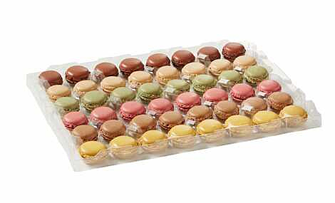Frozen, pre-filled macarons as part on the Bridor Lenotre range. On each tray there are 8 pieces of the following 6 flavours: Salted butter caramel, Chocolate, Lemon, Raspberry, Pistachio, Vanilla. They can also be used singly to decorate larger desserts, cheesecakes, trifles, gateaux etc. Each piece is approximately 12g: diameter - 4cm & height 2.6cm. There are 96 pieces in each 1.2kg bulk wholesale pack.